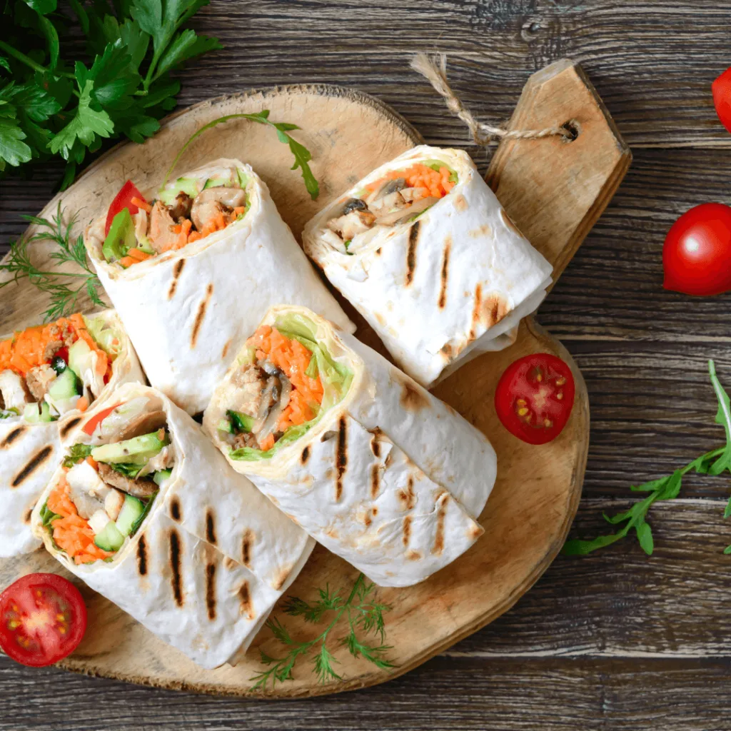 Nuestra otra gran especialidad son los wraps gourmet, muy indicados para fiestas y eventos más informales pero igualmente deliciosos. El catering de wraps es servido de forma individual, con un wrap por persona, pero con la posibilidad de entregarlo también en mitades para que los invitados puedan disfrutar más sabores.